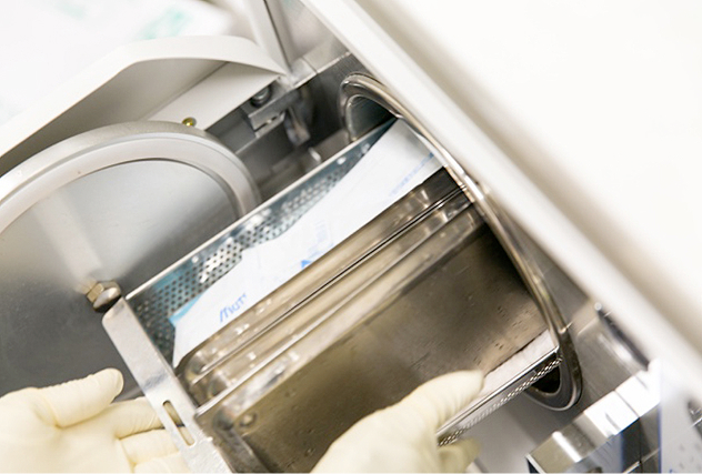 治療に使用する全ての器具を、患者様ごとにオートクレーブ(高圧蒸気殺菌装置)という専用の機器を使用して完全滅菌しています。